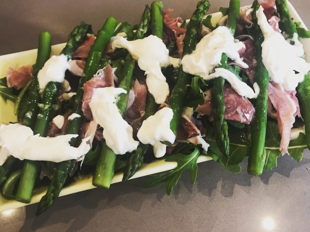 I really enjoyed this salad. The dressing was garlicky and sweet and made a nice change from a standard vinaigrette while still cutting through the richness of the burrata perfectly. Asparagus and prosciutto are a classic combination for a reason and everything on the plate just went together really well. It was also quite a beautiful dish full of vibrant spring colours, so it would make a really pretty centrepiece for a starter at a dinner party or side dish at a summer barbecue.