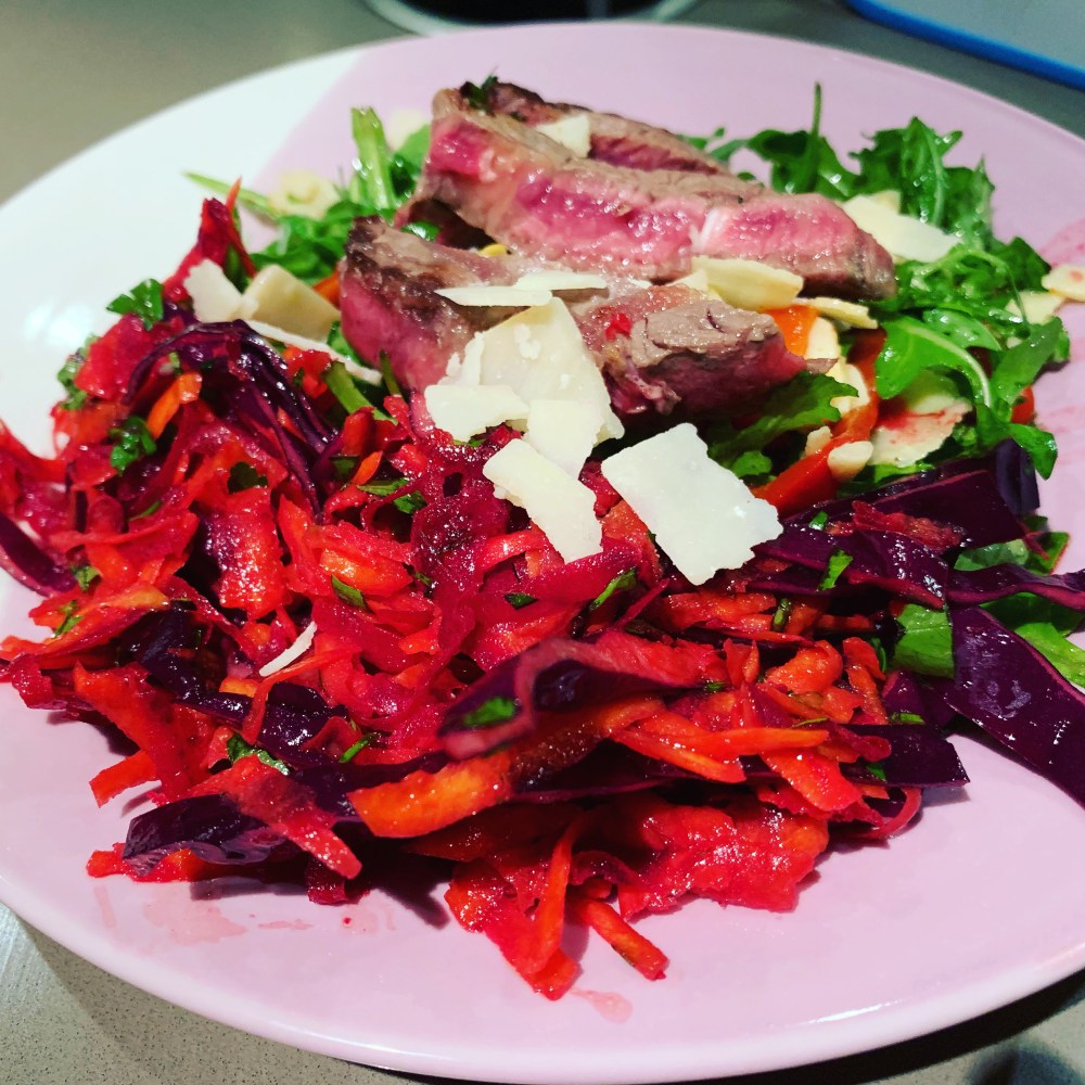 The slaw would definitely have benefitted from the zing of the red onion, but that was my (well, my husband’s) fault not the recipe’s. The dressing was well balanced. All the flavours went well together and the steak meant that this healthy dish felt a bit more indulgent.